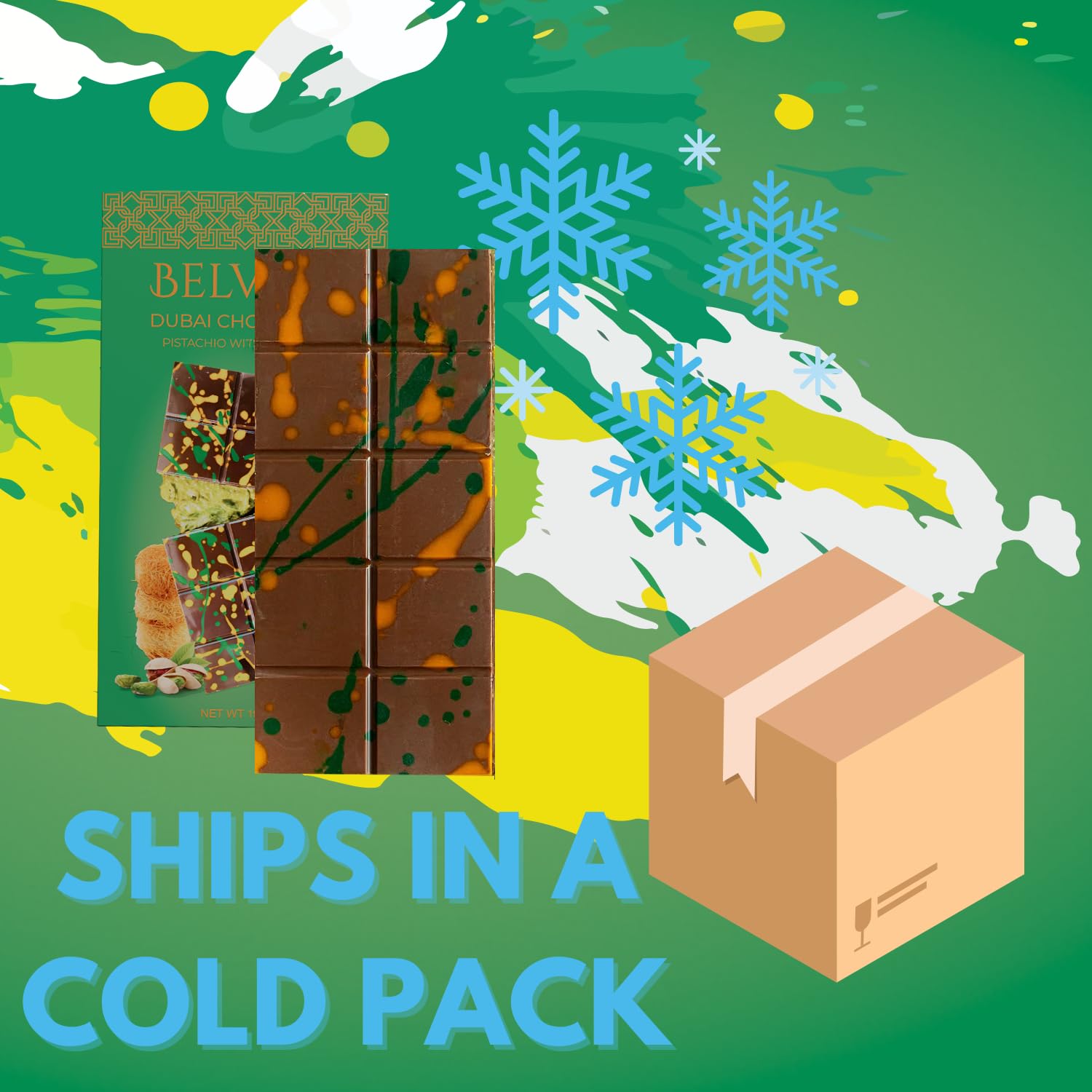 Indulge in the luxurious taste of the Middle East with Belvyn's Dubai Chocolate Bar Pistachio Deluxe. This 7 oz masterpiece blends rich milk chocolate with a creamy pistachio filling, all encased in the delicate, crisp threads of Kataifi phyllo dough. Crafted for connoisseurs, each bar promises a decadent experience that transports your senses to the bustling souks of Dubai. Celebrate the art of dessert with this viral Knafeh-inspired treat, perfect for gifting or personal enjoyment. Experience the pinnacle of chocolate craftsmanship with Belvyn—where every bite tells a story of tradition and innovation.
